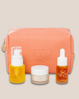 The Mini System is a 3-step ritual for glowing skin! This travel-friendly set includes minis of our bestselling NFZD Beauty essentials, that are powered by Botanicals, & other effective plant-powered ingredients for glowing, and healthy skin. Plus our signature Mini Beauty Bag is perfect for keeping all your NFZD Beauty faves organized at home or on-the-go!